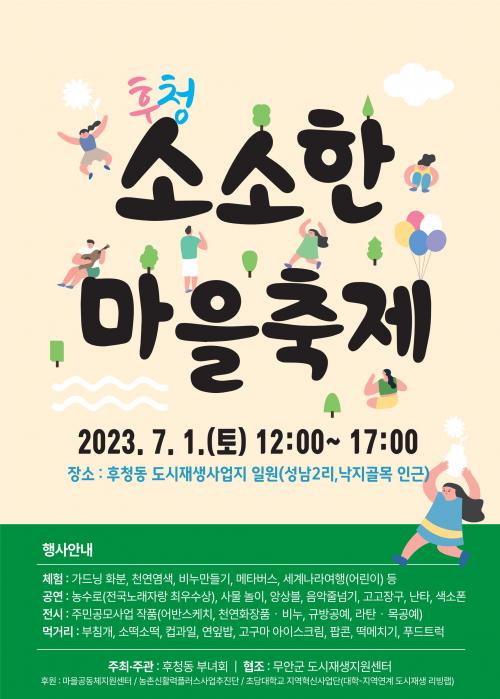 ¹«¾ÈÀ¾ µµ½ÃÀç»ý»ç¾÷ Áß Çϳª·Î ÃßÁøµÇ´Â À̹ø ¸¶À»ÃàÁ¦´Â Áֹΰø¸ð»ç¾÷ÀÇ ¼º°ú¸¦ °øÀ¯Çϰí Áֹΰú ¹æ¹®°´ µî¿¡°Ô º¼°Å¸®¿Í Áñ±æ °Å¸®¸¦ Á¦°øÇÏ¿© Áö¿ª¿¡ Ȱ·ÂÀ» Á¦°øÇϱâ À§ÇÑ ´Ù¾çÇÑ ÇÁ·Î±×·¥ÀÌ ÁøÇàµÈ´Ù.