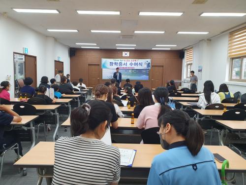 ÇÑÆí, ³»Àå»óµ¿ Áö¿ª»çȸº¸ÀåÇùÀÇü´Â ¡®Cheer up! ³× ²ÞÀ» ÀÀ¿øÇØ!¡¯ »ç¾÷À¸·Î ¿ÃÇØ±îÁö 127¸íÀÇ Çлý¿¡°Ô 2600¿©¸¸ ¿øÀÇ ÀåÇбݰú Ã¥»óÀ» Áö¿øÇß´Ù.