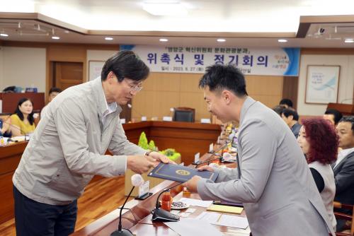 Á¤±âȸÀÇ¿¡ ¾Õ¼­ ¿ÃÇØ óÀ½ ¿­¸° ¹®È­°ü±¤ºÐ°úÀÇ À§ÃËÀå ¼ö¿©½ÄÀÌ ÀÖ¾ú´Ù. À§¿øÀå¿¡ ÇѼº¿í ¹ÎÁ·¹®È­À¯»ê¿¬±¸¿ø ÀÌ»çÀåÀÌ, ºÎÀ§¿øÀå¿¡ ¹Úö ¿µ¾Ï¿¹¼ú¿ø´ëÇ¥°¡ °¢°¢ ¼±ÃâµÆ´Ù.