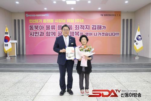 ±¸¾¾´Â "±×Àú ºÀ»çȰµ¿À» ÇØ¿ÔÀ» »ÓÀε¥ ÀÌ·¸°Ô ÀÇ¹Ì ÀÖ´Â »óÀ» ¹Þ°Ô µÇ¾î ±â»Ú´Ù"¸ç "ƯÈ÷ ½ÃÀå´Ô ÃëÀÓ 1ÁÖ³âÀ» ±â³äÇÏ´Â ÀÚ¸®¿¡¼ »óÀ» ¹Þ°Ô µÇ¾î ´õ ÀÇ¹Ì ÀÖ°í ÀںνÉÀ» °¡Áö°í ´õ ¿½ÉÈ÷ ºÀ»çÇϰڴÙ"°í ¸»Çß´Ù.