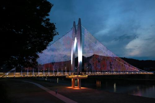 ¿¬Àå(L) 133m, º¸ÇàÆø(B) 2m, ÁÖž ³ôÀÌ 30m±Ô¸ðÀÇ ¹«ÁÖ±º ¹«ÁÖÀ¾ ³²´ëõ º°ºû´Ù¸®´Â Áö³ÇØ 5¿ù Âø°øÇØ ÃÑ »ç¾÷ºñ 30¾ï ¿øÀÌ ÅõÀÔµÈ °ÍÀ¸·Î ÃÖ´ë ÀÌ¿ë °¡´É ÀοøÀº ¼ºÀÎ 75kg ±âÁØ, ¾à 1õ¸íÀÌ´Ù.