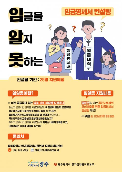 ±¤ÁÖ½ÃÀϰ¡Á¤¾ç¸³Áö¿øº»ºÎ´Â ±¤ÁÖ Á÷ÀåÀÎ ºÎ¸ðµéÀÇ ¸ð¼ºº¸È£Á¦µµ¿Í ÀÏ¡¤°¡Á¤ ¾ç¸³ Áö¿øÁ¦µµ »ç¿ë¿¡ ¾î·Á¿òÀ» ´ú±â À§ÇØ À̹ø ÄÁ¼³ÆÃÀ» ¸¶·ÃÇß´Ù. ÀÌ Á¦µµ¸¦ »ç¿ëÇÏ¸é¼ ÁÙ¾îµå´Â ¿ù±Þ¿¡ ºÒÀÌÀÍÀÌ ¾ø´ÂÁö È®ÀÎÇÏ°í ½ÍÀ» ¶§ ÀÓ±Ý¸í¼¼¼ ÄÁ¼³ÆÃÀ» ½ÅûÇÏ¸é µÈ´Ù.
