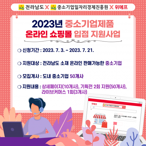 ¿Â¶óÀÎ ÆÇ¸Å °¡´ÉÇÑ Àü³²Áö¿ª Áß¼Ò±â¾÷ 50°³ »ç¸¦ ¼±Á¤ÇØ ¢ßÀ§¸ÞÇÁ ÀÔÁ¡À» Áö¿øÇÑ´Ù.