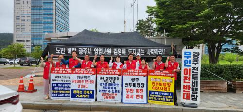 ¹Ú¹®Àç À§¿øÀåÀº Àλ縻À» ÅëÇØ ¡°±¤Áֽà ¼÷¿ø»ç¾÷¿¡ ±è¿µ·Ï µµÁö»ç°¡ ³ª¼¼ ±º °øÇ× ¹«¾È ÀÌÀüÀ» À̾߱âÇÏ´Â °ÍÀº Áö±Ý±îÁö ¹Î°£ °øÇ×°ú ±º °øÇ× ÀÌÀüÀº º°°³¶ó°í ÁÖÀåÇØ ¿Ô´ø º»ÀÎÀÇ À̾߱⸦ ºÎÁ¤ÇÏ´Â ÀÌÀ²¹è¹ÝÀû ÇàÀ§¡±¶ó¸ç ±è Áö»ç¸¦ ¼ºÅäÇßÀ¸¸ç, ¡°±º °øÇ× ¹«¾È ÀÌÀüÀº ±º¹ÎÀÇ ÇູÃß±¸±Ç°ú »ýÁ¸±Ç°ú °ü°èµÈ »ç¾ÈÀ¸·Î ±º¹Î ¸ðµÎ°¡ ÇѸ¶À½ ÇѶæÀ¸·Î ¹Ý´ëÇØ ³ª°¡ÀÚ¡±¸ç °ÇÑ ¹Ý´ë ¸Þ½ÃÁö¸¦ Àü´ÞÇß´Ù.