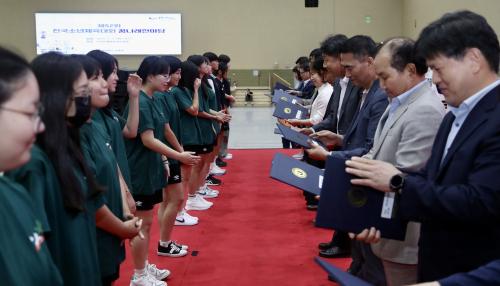 À̾î ÃâÀü¼±¼ö¿Í Çкθð, Çб³ ¿îµ¿ºÎ ÁöµµÀÚµéÀÌ ¼º°ú¿Í ÇâÈÄ °èȹÀ» °øÀ¯ÇÏ´Â ¡®²Þ³ª·¡ ¹ßÇ¥¡¯°¡ ÁøÇàµÆ°í, ÀÌ¿¡ ³ë¸í¼÷ µµ±³À°Ã» À¯ÃʵÀ°°úÀåÀÌ À̵éÀÇ ²ÞÀ» °Ý·ÁÇϸç ÇåÁ¤½Ã¸¦ ³¶¼ÛÇØ ¹Ú¼ö¸¦ ¹Þ¾Ò´Ù.