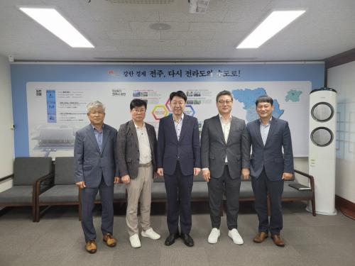 ¿ì¹ü±â ÀüÁÖ½ÃÀåÀº 4ÀÏ ÀüÁÖ¸¦ ¹æ¹®ÇÑ ¾Èº´¿î »ç´Ü¹ýÀÎ ¼ºÎÈ£ÁÖÇÑÀÎȸ ȸÀå°ú ¸¸³ª, Áö¿ª Áß¼Ò±â¾÷ÀÇ ÆÇ·Î È®´ë¸¦ À§ÇØ ÀÎÀû ±³·ù È®´ë ¹× ¼öÃâ±³µÎº¸¸¦ ¸¶·ÃÇÏ´Â ¹æ¾È¿¡ ´ëÇØ ³íÀÇÇß´Ù.