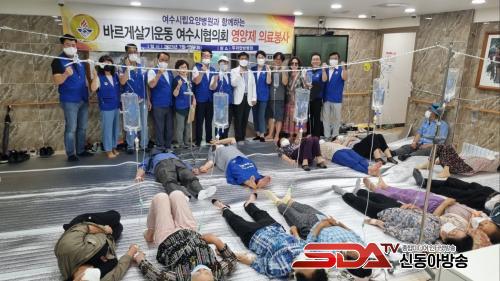 ¹Ù¸£°Ô»ì±â¿îµ¿ ¿©¼ö½ÃÇùÀÇȸ¿¡¼ ÁÖ°üÇÏ°í ¿©¼ö½Ã¸³¿ä¾çº´¿ø(¿øÀå ÀåÁ¤¿ì) ÈÄ¿øÀ¸·Î µ¿¹®µ¿ ¿ì¸®Çѹ溴¿ø¿¡¼ µ¿¹®µ¿ ¸¶À»°æ·Î´ç ¾î¸£½Å 80¸íÀ» ´ë»óÀ¸·Î ¿µ¾çÁ¦(¸µ°Å) Åõ¿© ÀÇ·á ºÀ»ç¸¦ ½Ç½ÃÇß´Ù.
