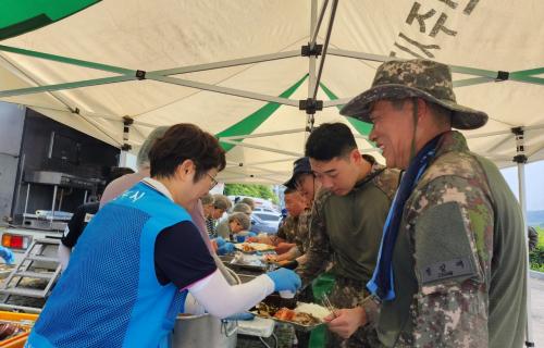 ¼¾ÅÍ´Â À̳¯ Á¶¼ÓÇÑ Æø¿ì ÇÇÇØ º¹±¸¸¦ À§ÇØ ¾Ö¾²´Â ±ºÀÎ µî º¹±¸ Àη¿¡ µµ¿òÀ» ÁÖ±â À§ÇØ ÇູÇѹä»ó ǪµåºÀ»ç´Ü(ȸÀå ¾È¿µ¼ø) µî ºÀ»çÀÚ 40¿© ¸í°ú ¶æÀ» ¸ð¾Æ Á¤¼º²¯ ÁغñÇÑ µÅÁö°í±â ±èÄ¡Âî°³¿Í ¼ÒºÒ°í±â µî Á¡½É 230Àκаú °£½Ä(¼ö¹Ú) µîÀ» Á¦°øÇß´Ù.