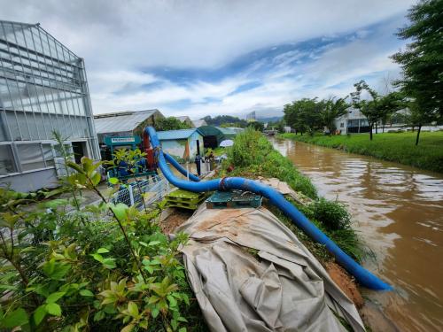 ¶ÇÇÑ, °ü±¤Á¤Ã¥½Ç Á÷¿ø 30¿© ¸íÀº À̳¯ »õº® 6½Ã30ºÐºÎÅÍ Àü½Ã°ü 3°³¼Ò ³»¿¡ ³ó¾÷¿ë ¿£Áø ¾ç¼ö±â 3´ë¸¦ µ¿¿øÇØ ¹è¼öÀÛ¾÷À» ÇÏ°í ºø¹°À» ¹ÛÀ¸·Î ¹Ð¾î³»¸ç ½Ä¹°µéÀ» ±ú²ýÀÌ ¾Ä´Â º¹±¸ ÀÛ¾÷À» ½Ç½ÃÇß´Ù.