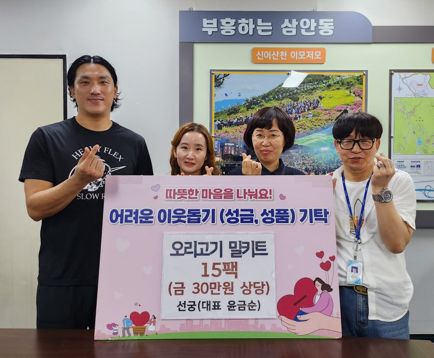 ¹è¸í¼÷(»ï¾Èµ¿Àå)Àº ¡°°æ±â ¾ÇÈ·Î ¿Ü½ÄÀÌ ¾î·Á¿î ÀÌ¿ôµé¿¡°Ô ¶±°¥ºñ¿Í ¿À¸®ºÒ°í±â ¹ÐŰƮ°¡ Å« ÈûÀÌ µÇ°í ÀÖ°í Á¤±âÀûÀ¸·Î ÈÄ¿øÇØÁּż °¨»çÇÏ´Ù, ¾ÕÀ¸·Îµµ ¾î·Á¿î ºÐµé¿¡ ´ëÇÑ ¸¹Àº °ü½É°ú ÀÀ¿øÀ» ºÎʵ台´Ù¡±°í °¨»ç¸¦ ÀüÇß´Ù.