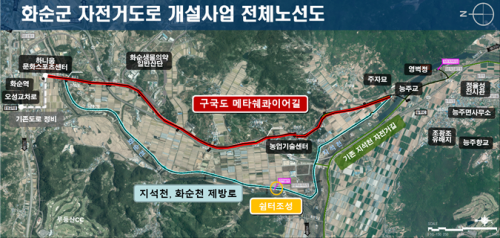 ȼø±º ÀÚÀü°Åµµ·Î °³¼³»ç¾÷Àº ÃÑ »ç¾÷ºñ 33¾ï ¿øÀ» µé¿© 14.4km¿¡ °ÉÃÄ Á¶¼ºµÇ¸ç ȼøÀ¾ ´ë¸®¿¡¼ ¿¾ ±¹µµ ¸ÞŸ½¦ÄâÀÌ¾î±æ·Î ´ÉÁÖ¸éÀ» ¿¬°áÇϸç, Áö¼®Ãµ°ú ȼøÃµ Á¦¹æÀ» ÀÌ¿ëÇÏ¿© ´Ù½Ã ȼøÀ¾À¸·Î µ¹¾Æ¿À´Â ¿Õº¹ ±¸°£À» ¸ñÇ¥·Î Çϰí ÀÖ´Ù.