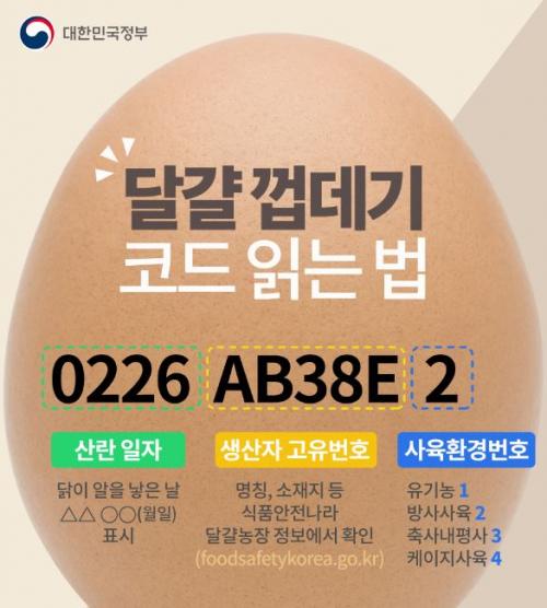 ½ÃÁß¿¡ À¯ÅëµÇ´Â °è¶õÀÇ ³°¢(²®µ¥±â)¿¡´Â »çÀ°È¯°æ, ³ó°¡Á¤º¸, »ê¶õÀÏÀÚ µîÀ» È®ÀÎÇÒ ¼ö ÀÖ´Â ¼ýÀÚ Ç¥±â°¡ µÇ¾î ÀÖ´Ù. ¿¹¸¦ µé¾î ¡®0226 AB38E2¡¯¶ó°í Ç¥±âµÇ¾î ÀÖ´Ù¸é, ¡®AB38E¡¯·Î ºÐ·ùµÈ ³ó°¡¿¡¼ ¹æ»ç»çÀ°À» ÅëÇØ 2¿ù 26ÀÏ »ý»êÇÑ(»ê¶õÇÑ) °è¶õÀÌ´Ù.