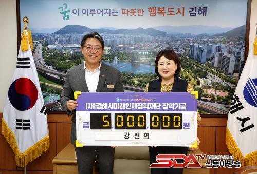 [½Åµ¿¾Æ¹æ¼Û´º½º=ÃÖ¼ÛÈ­±âÀÚ] ±èÇØ½Ã¹Ì·¡ÀÎÀçÀåÇÐÀç´Ü(ÀÌ»çÀå ÇöÁ¾¿ø)Àº 11ÀÏ °­¼±Èñ Àü ±èÇØ½Ã¼­ºÎº¸°Ç¼ÒÀåÀÌ 500¸¸¿øÀ» ±âŹÇß´Ù°í ¹àÇû´Ù.