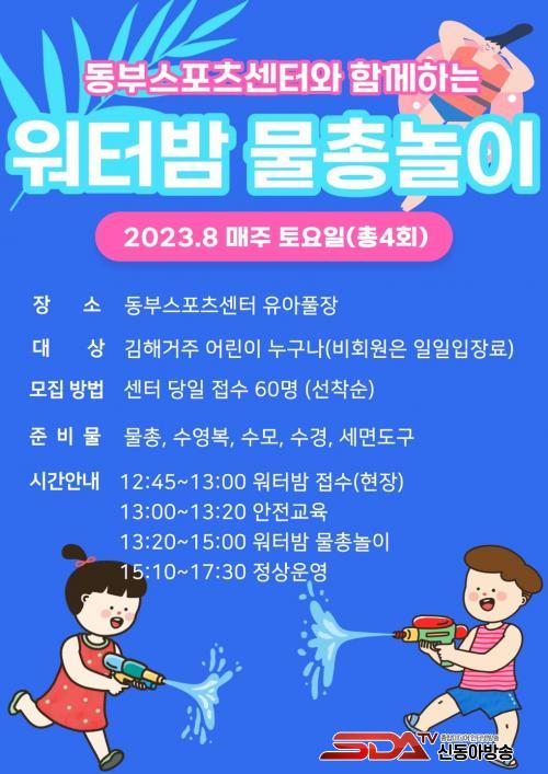 [½Åµ¿¾Æ¹æ¼Û´º½º=ÃÖ¼ÛÈ­±âÀÚ] ±èÇØ½Ãµµ½Ã°³¹ß°ø»ç µ¿ºÎ½ºÆ÷Ã÷¼¾ÅÍ´Â 8¿ù ¸ÅÁÖ Åä¿äÀϸ¶´Ù 13½Ã~15½Ã(2½Ã°£)±îÁö ´õÀ§Å»Ãâ~ ½Ã¿øÇÏ°í ¾ÈÀüÇÑ ¿öÅ͹ã!(¹°ÃѳîÀÌ) ¿î¿µÇϰí ÀÖ´Ù°í ¹àÇû´Ù.