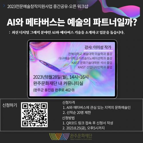 ¿ÃÇØ Àç´ÜÀÇ Ã¢ÀÛÁö¿ø»ç¾÷¿¡¼ °ø¸ð·Î ¼±Á¤µÈ 17ÆÀ ÀÛ°¡µéÀÇ ¼ö¿ä¸¦ ÆÄ¾ÇÇÏ¿© °³ÃÖÇÏ´Â Áß°£°øÀ¯ ¿öÅ©¼óÀº ÀÛ°¡ÀÇ ¿ª·® °È, ¿øÈ°ÇÑ ÀÛ¾÷ Ȱµ¿°ú Àü½Ã¸¦ µ½±â À§ÇÑ ÇÁ·Î±×·¥À¸·Î ±¸¼ºµÈ´Ù. À̹ø ¿öÅ©¼óÀº ¿¹¼ú°¡µéÀÌ °®´Â AI¿Í ¸ÞŸ¹ö½º¿¡ ´ëÇÑ ±Ã±ÝÁõ»Ó¸¸ ¾Æ´Ï¶ó ÀÚ½ÅÀÇ ÀÛ¾÷°ú Á¢Á¡À» ã°íÀÚ ÇÏ´Â ¼ö¿ä¿¡ ÀÇÇØ ¿¸®°Ô µÆ´Ù.
