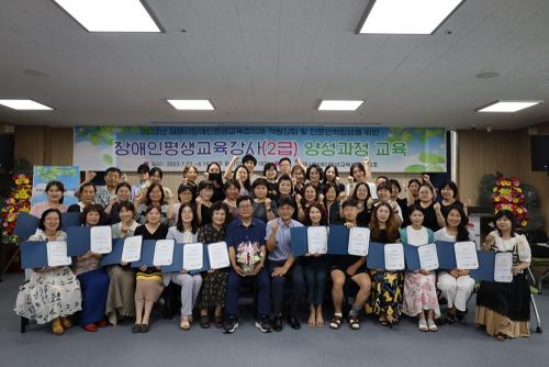 Àå¾ÖÀÎ Æò»ý±³À° ¼ö¿ä Áõ´ë¿¡ ¹ß¸ÂÃç ÇöÀå¿¡¼ Ȱµ¿ÇÒ Àå¾ÖÀÎ Æò»ý±³À° Àü¹®°»ç ¾ç¼º ¹× Àå¾ÖÀο¡ ´ëÇÑ ÀÌÇØ¿Í ±³À° Àü¹®¼º ÇÔ¾çÀ» À§ÇØ ¸¶·ÃµÈ À̹ø ±³À°Àº Àå¾ÖÀÎ ´ë»ó Æò»ý±³À° °»çȰµ¿ Èñ¸ÁÀÚ 56¸íÀÌ Âü¿©ÇÏ¿´À¸¸ç, 7¿ù 22ÀϺÎÅÍ 8¿ù 19ÀϱîÁö 5ÁÖ°£ ÃÑ 10ȸ±â(30½Ã°£)·Î ÁøÇàµÆ´Ù.