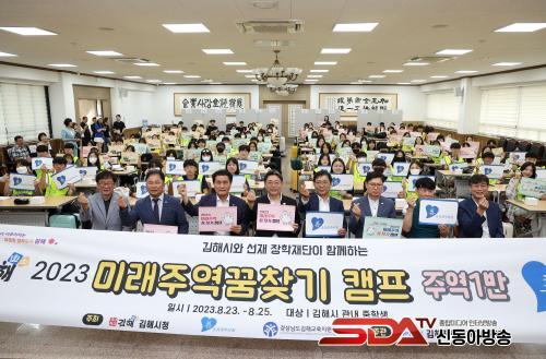 [½Åµ¿¾Æ¹æ¼Û´º½º=ÃÖ¼ÛÈ­±âÀÚ] ±èÇØ½Ã´Â 8¿ù 23ÀϺÎÅÍ 25ÀϱîÁö °ü³» ÁßÇлý 114¸íÀ» ´ë»óÀ¸·Î Áø·ÎŽ»öÄ·ÇÁ ½ÃÇà¿¡ ¸ÂÃç, 8¿ù 23ÀÏ ´çÀÏ ¿ÀÀü 7½Ã40ºÐ ±èÇØ»ó°øÈ¸ÀÇ¼Ò ´ëȸÀǽǿ¡¼­ 2023³â ¡®¹Ì·¡ÁÖ¿ª ²Þ ã±â¡¯ Áø·ÎŽ»öÄ·ÇÁ ¹ß´ë½ÄÀ» °³ÃÖÇß´Ù.