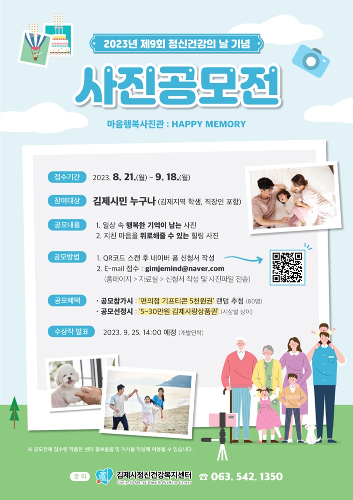 °ø¸ðÀü¿¡ ´ëÇÑ ½Ã¹ÎµéÀÇ Âü¿©µµ¸¦ ³ôÀ̱â À§ÇÏ¿© ±èÁ¦½Ã °ü³»¿¡ Æ÷½ºÅÍ ºÎÂø, SNS °Ô½Ã µî ¿Â¡¤¿ÀÇÁ¶óÀÎ È«º¸¸¦ ÁøÇàÇϰí ÀÖÀ¸¸ç, Âü¿©´Â ±èÁ¦½ÃÁ¤½Å°Ç°º¹Áö¼¾ÅÍ È¨ÆäÀÌÁö ¹× Æ÷½ºÅÍ¿¡ ºÎÂøµÇ¾î ÀÖ´Â QRÄڵ带 ½ºÄµÇÏ¿© ¼Õ½±°Ô Á¢¼öÇÒ ¼ö ÀÖ´Ù.