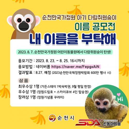 [½Åµ¿¾Æ¹æ¼Û=±è¿ëÈÆ ±âÀÚ] ¼øÃµ½Ã(½ÃÀå ³ë°ü±Ô)°¡ Áö³­ 7ÀÏ 2023¼øÃµ¸¸±¹Á¦Á¤¿ø¹Ú¶÷ȸ ±â°£¿¡ ±¹°¡Á¤¿ø µ¿¹°¿ø¿¡¼­ ž ¾Æ±â ´Ù¶÷Áã¿ø¼þÀÌ À̸§À» °ø¸ðÇÑ´Ù.