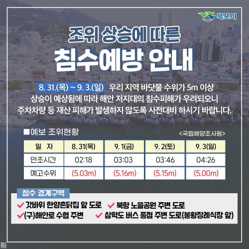 ÇÑÆí ¸ñÆ÷½Ã´Â ¹Ù´å¹° ¼öÀ§°¡ Á¶¼®Ç¥»ó Á¶°í 4.90mÀÌ»óÀÏ °æ¿ì ÇØ¼ö À§ÇèÀÏ·Î ÁöÁ¤ÇÏ¿© ½Ã¹ÎµéÀÇ Àç»êÇÇÇØ°¡ ¹ß»ýÇÏÁö ¾Êµµ·Ï ħ¼öÇÇÇØ ¿¹¹æ¿¡ Àû±Ø ´ëóÇϰí ÀÖ´Ù.