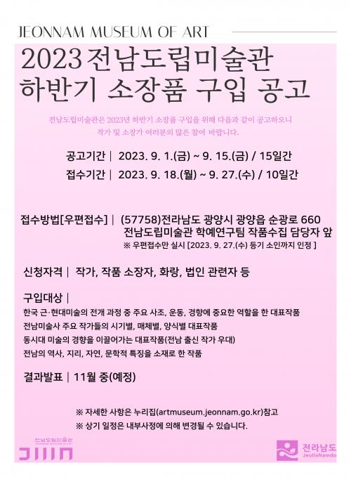 Á¢¼ö´Â ¿À´Â 27ÀϱîÁö·Î, ¿ìÆíÀ¸·Î¸¸ °¡´ÉÇÏ´Ù. °ø¸ð¿Í °ü·ÃÇÑ »ó¼¼ÇÑ ³»¿ëÀº Àü³²µµ¸³¹Ì¼ú°ü ´©¸®Áý¿¡¼ È®ÀÎÇÒ ¼ö ÀÖ´Ù.