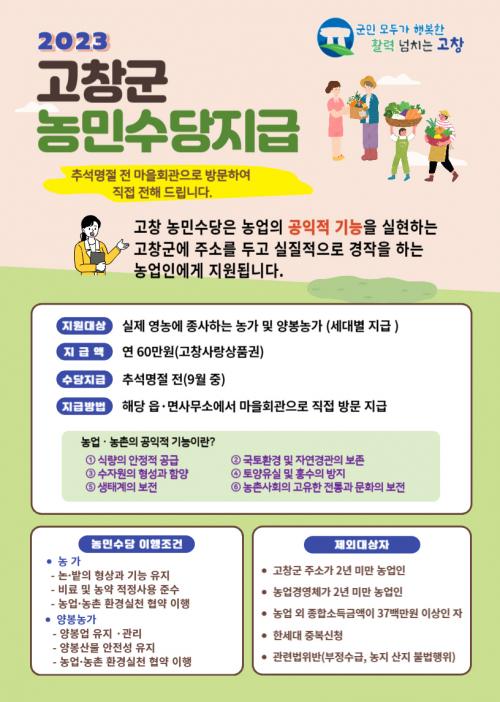 2019³â ÀüºÏ ÃÖÃÊ·Î ³ó¹Î °øÀͼö´çÀ» Áö±ÞÇØ¿Â °íⱺÀº ³ó¾÷¡¤³óÃÌ °øÀÍÀû °¡Ä¡ÀÇ Àü±¹Àû È®»ê¿¡ ÀÏÁ¶ÇÏ¿© 2020³â µµ³» 14°³ Àüü ½Ã¡¤±ºÀ¸·Î È®´ë ½ÃÇàµÆ°í, 2021³â¿¡´Â ¾î°¡¿Í ¾çºÀ³ó°¡±îÁö Æ÷ÇԵƴÙ.