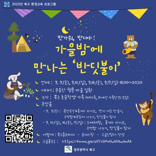 ºÏ±¸´Â ¸ÕÀú ¿À´Â 9ÀϺÎÅÍ 17ÀϱîÁö ȸ´ç 50¿© ¸íÀÇ °¡Á· ´ÜÀ§ ÁÖ¹ÎÀ» ´ë»óÀ¸·Î ¡®°¡À»¹ã¿¡ ¸¸³ª´Â ¹Ýµ÷ºÒÀÌ Çà»ç¡¯¸¦ 4ȸ ¿î¿µÇÏ¿© Åë±âŸ °ø¿¬, ȯ°æ ÄûÁî Ç®ÀÌ, ¹Ýµ÷ºÒÀÌ Å½»ç µî ÁֹεéÀÌ Áñ±æ ¼ö ÀÖ´Â ´Ùä·Î¿î ÇÁ·Î±×·¥À» Á¦°øÇÒ °èȹÀÌ´Ù.