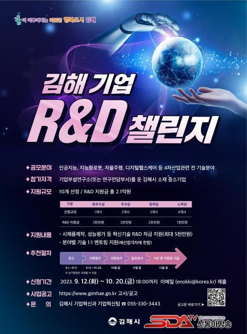 [½Åµ¿¾Æ¹æ¼Û´º½º=ÃÖ¼ÛÈ­±âÀÚ] ±èÇØ½Ã´Â ±â¾÷ÀÇ ÀÚ¹ßÀû ±â¼úÇõ½Å ¿¬±¸°³¹ß(R&D) Ȱµ¿À» ÃËÁøÇÏ°í ¹Ì·¡¼ºÀ嵿·ÂÀ» È®º¸Çϱâ À§ÇØ 12ÀϺÎÅÍ ´ÙÀ½´Þ 20ÀϱîÁö ¡®±èÇØ ±â¾÷ R&D 縰Áö¡¯ Âü¿©±â¾÷À» ¸ðÁýÇÑ´Ù.