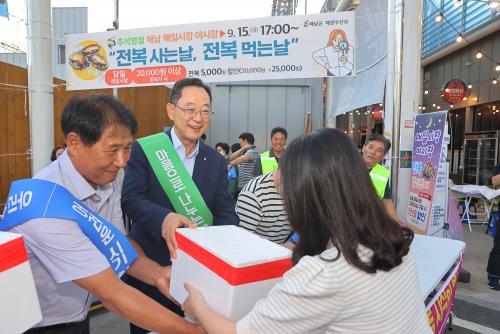 ¶ÇÇÑ ÇØ³²±ºÀüº¹Çùȸ¿Í ¸ÅÀϽÃÀå »óÀÎȸ°¡ Çù·ÂÇÏ¿© ¾ß½ÃÀå¿¡¼ Àüº¹ ¹°È¸µµ Àú·ÅÇÑ °¡°Ý¿¡ ÆÇ¸ÅÇß°í, ¾ß½ÃÀå »óÀεéÀº Àüº¹À» ÀÌ¿ëÇÑ ¿ä¸®¿Í ¾ÈÁÖµµ ¼±º¸¿© ¾ß½ÃÀåÀ» ãÀº ¸¹Àº ±º¹Îµé°ú ÇÔ²²ÇÏ´Â Àüº¹ ¼Òºñ ÃËÁøÀÇ ÀåÀÌ µÆ´Ù.