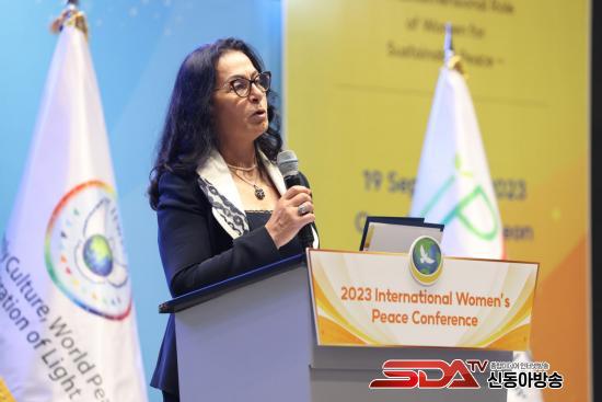 ¸ù°ñÀÇ Àü ±¹È¸ÀÇ¿øÀÌÀÚ IWPG ÀÚ¹®À§¿øÀÎ ºÎµ¥ ¹®ÈåÅä¾ß ¸ð¼º¿µ¿¹ÈÆÀå ¾î¸Ó´Ïµé Çùȸ ´ëÇ¥´Â ¡®Áö¼Ó°¡´ÉÇÑ ÆòÈ­ÀÇ Á¦µµÈ­¸¦ À§ÇÑ ¿©¼ºÀÇ ¿ªÇÒ¡¯À» ÁÖÁ¦·Î ¹ßÇ¥Çß´Ù. ±×´Â ·¯½Ã¾Æ-¿ìÅ©¶óÀ̳ª ÀüÀï »ç·Ê¸¦ µé¾î Çö ±¹Á¦¹ý°ú ÆòÈ­ Á¶¾à¿¡ ½ÇÈ¿¼ºÀÌ ¾ø´Ù°í ¹æÁõÇϸ鼭 DPCW ¹ýÁ¦È­¸¦ À§ÇØ ¿©¼ºµéÀÇ ¿ªÇÒÀÌ Áß¿äÇÏ´Ù°í °­Á¶Çß´Ù.