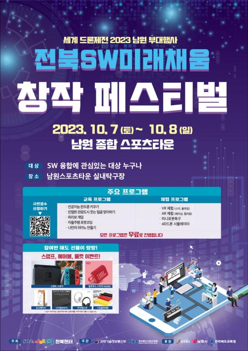 ¿ÃÇØ óÀ½ °³ÃֵǴ ¡®2023 SW¹Ì·¡Ã¤¿ò âÀÛÆä½ºÆ¼¹ú¡¯Àº °úÇбâ¼úÁ¤º¸Åë½ÅºÎ °ø¸ð»ç¾÷À¸·Î ¼±Á¤µÈ SW¹Ì·¡Ã¤¿ò»ç¾÷ ÀÏȯÀ¸·Î °³ÃÖÇÏ´Â Çà»ç·Î, ¡®¼¼°èµå·ÐÁ¦Àü 2023 ³²¿ø¡¯ ±â°£ ³» ¿¬°è Çà»ç·Î ÆîÃÄÁ®, ¾ÆÀ̵é°ú ÇÔ²² »õ·Î¿î ¹Ì·¡¸¦ ÇâÇÑ ºñÇàÀÇ ¹®À» ¿ °èȹÀÌ´Ù.
