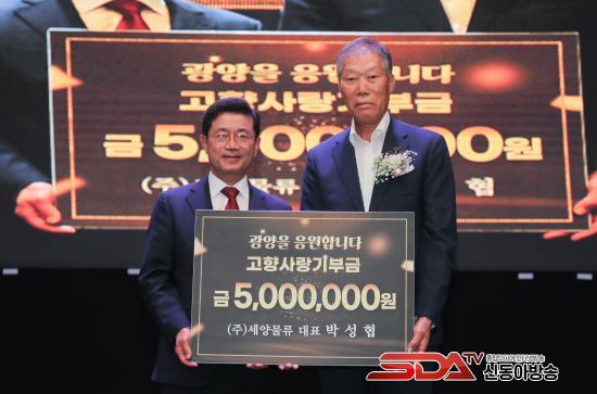¹Ú¼ºÇù (ÁÖ)¼¼¾ç¹°·ù ´ëÇ¥ÀÌ»ç´Â ºÎ»ê¿¡ °ÅÁÖÇϰí ÀÖ´Â °ñ¾àµ¿ Ãâ½Å ±â¾÷°¡À̸ç 2021³â ÀÚ¶û½º·¯¿î ±¤¾çÀλó ¼ö»óÀÚ·Î Á¦29ȸ ±¤¾ç½Ã¹ÎÀÇ ³¯À» ÃàÇÏÇØÁÖ±â À§ÇØ °íÇâ¿¡ ¹æ¹®ÇØ ¿¬°£ ÃÖ°í ±âºÎ±Ý¾×ÀÎ 500¸¸¿øÀÇ °íÇâ»ç¶û±âºÎ±ÝÀ» ±âŹÇÏ¸ç °íÇâ»ç¶û ¸¶À½À» Àü´ÞÇß´Ù.