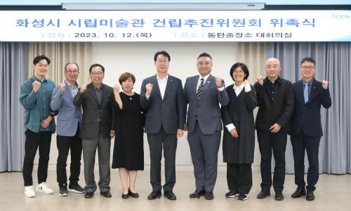 [½Åµ¿¾Æ¹æ¼Û=ÀÌÀçö ±âÀÚ] È­¼º½Ã(½ÃÀå Á¤¸í±Ù)°¡ 12ÀÏ µ¿ÅºÃâÀå¼Ò ´ëȸÀǽǿ¡¼­ È­¼º½Ã¸³¹Ì¼ú°ü °Ç¸³ÃßÁøÀ§¿øÈ¸(ÀÌÇÏ À§¿øÈ¸) À§ÃËÀåÀ» ¼ö¿©ÇÏ°í º»°ÝÀûÀÎ ¹Ì¼ú°ü °Ç¸³ÀÇ ½ÃÀÛÀ» ¾Ë·È´Ù.