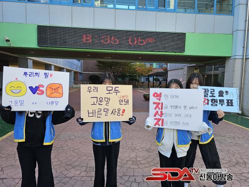 ±¤¿µ°íµîÇб³ Çлýȸ Çлýµé°ú û¼Ò³â ¹®È­¼¾ÅÍ Ã»¼Ò³âÀÚ¿øºÀ»ç´Ü Uni ÇлýµéÀÌ ÇÔ²² ÁøÇàÇÑ ÀÌ Ä·ÆäÀο¡¼­ ¹Ù¸¥ ¸»À» »ç¿ëÇÏÀÚ´Â ÇÇÄÏ ¼±Àü°ú ÇÔ²² ¹Ù¸¥ ¸» »ç¿ë ¹èÁö¸¦ Çлýµé¿¡°Ô Àü´ÞÇÏ¿´´Ù.
