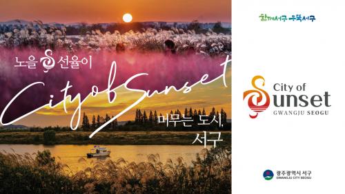 °ü±¤½½·Î°Ç ¡®³ëÀ»&¼±À²ÀÌ ¸Ó¹«´Â µµ½Ã, ¼­±¸¡¯´Â Áö¿ªÀ» ´ëÇ¥ÇÏ´Â °ü±¤ÀÚ¿øÀ¸·Î ¼Õ²ÅÈ÷´Â ¼­Ã¢µé³è ³ëÀ»°ú À½¾Ç¹®È­µµ½Ã ¼­±¸ÀÇ À̹ÌÁö¸¦ °­Á¶Çϸ鼭 ¡®º¸°í Áñ±â¸ç ¸Ó¹«´Â¡¯ °ü±¤µµ½Ã µµ¾àÀÇ ÀÇÁö¸¦ ´ã¾Æ³Â´Ù. ¾Æ¿ï·¯ °ü±¤BIÀÇ ±âº» »ö»óµµ ³ëÀ»À» »ó¡ÇÏ´Â ºÓÀº °è¿­·Î Á¤ÇßÀ¸¸ç, °ü±¤BI¿Í ½½·Î°Ç ¿µ¹®Ç¥±â´Â ¡®City of Sunset, Gwangju Seogu¡¯´Ù.