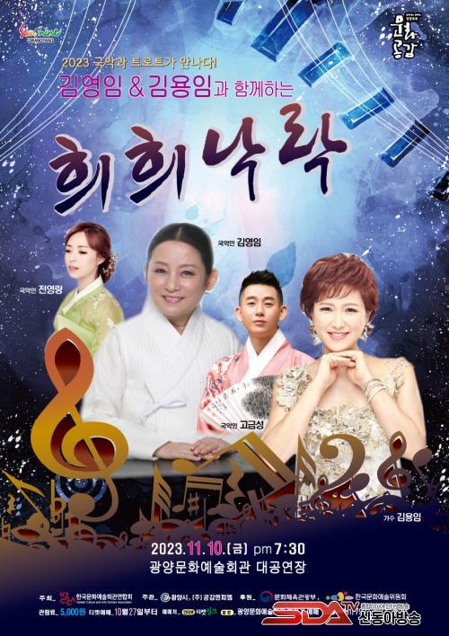 [½Åµ¿¾Æ¹æ¼Û=¹Ú±¤¿Á±âÀÚ] ±¤¾ç½Ã´Â ³»´Þ 10ÀÏ(±Ý) Àú³á 7½Ã 30ºÐ ¹®È­¿¹¼úȸ°ü ´ë°ø¿¬Àå¿¡¼­ ¡®2023 ±¹¾Ç°ú Æ®·ÎÆ®°¡ ¸¸³ª´Ù! ±è¿µÀÓ & ±è¿ëÀÓ°ú ÇÔ²²ÇÏ´Â ÈñÈñ³«¶ô¡¯ °ø¿¬À» °³ÃÖÇÑ´Ù.