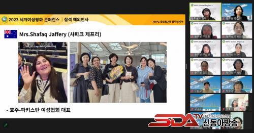 ¡®2023 ¼¼°è¿©¼ºÆòÈ­ ÄÜÆÛ·±½º¸¦ ´Ù³à¿Í¼­¡¯¶ó´Â ÁÖÁ¦·Î ÁøÇàµÈ À̹ø ¸ðÀÓÀº ¼­Çö¹Ì ÁöºÎÀåÀÇ Àλ縻À» ½ÃÀÛÀ¸·Î ¡®2023 ¼¼°è¿©¼ºÆòÈ­ ÄÜÆÛ·±½º¡¯ÀÇ ÇÏÀ̶óÀÌÆ® ¿µ»óÀ» ½ÃûÇÑ µÚ, ¸ÞÀÎ À̺¥Æ®ÀÎ ¿©¼º ¼¼¼Ç ºÎ¹®¿¡ ´ëÇØ ÁßÁ¡ÀûÀ¸·Î ¾Ë¾Æº¸´Â ¼øÀ¸·Î ÀÌ·ïÁ³´Ù.