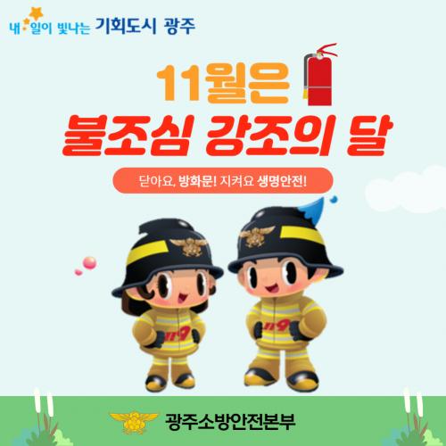 [½Åµ¿¾Æ¹æ¼Û=±èÀçÂù±âÀÚ] ±¤ÁÖ±¤¿ª½Ã¼Ò¹æ¾ÈÀüº»ºÎ´Â 11¿ùÀ» ¡®ºÒÁ¶½É °­Á¶ÀÇ ´Þ¡¯·Î ÁöÁ¤Çϰí È­À翹¹æ Ȱµ¿À» ÆîÄ£´Ù.