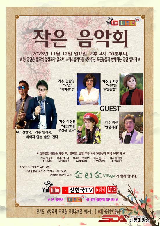 ÀÌ ÀÛÀº À½¾Çȸ´Â ±×µ¿¾È ¼Ò¸®¼Òºô¸®Áö¿¡¼ »ö¼ÒÆù ¿¬ÁÖ·Î °ø¿¬À» Çϰí ÀÖ´ø ¡°½ÅÇѱ¹TV¡±°¡ Àû±Ø ÃßõÇÏ¿© ÀÌ·ç¾îÁø À½¾Çȸ·Î¼ ½ÅÇѱ¹TV´Â ±×µ¿¾È ¸¹Àº ¼±, ÈĹèµéÀ» ¼Ò¸®¼Ò ¹«´ë¿¡¼ °ø¿¬À» ÁÖ°üÇÏ°í ³ª´®À» ½ÇõÇÏ¸ç ´Ù¾çÇÑ ¹«´ë¸¦ ¼±º¸¿© ¿Ô´Ù.