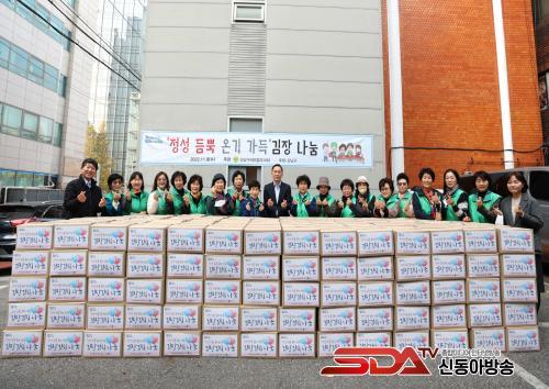 ÀÌÈÄ 9ÀÏ ºÎ³àȸÀå ¹× È¸¿ø 30¿©¸íÀÌ Âü¿©ÇØ ±¸Ã» º»°ü ¾Õ¿¡¼ ±èÀå±èÄ¡ 500¹Ú½º(°¢ 10kg¾¿ ÃÑ 5,000kg) Àü´Þ½ÄÀ» °³ÃÖÇϰí, 22°³ µ¿ Ãë¾à°èÃþ 470°¡±¸¿Í ¾Æµ¿º¹Áö½Ã¼³ 3°³¼Ò¿¡ Àü´ÞÇÑ´Ù.