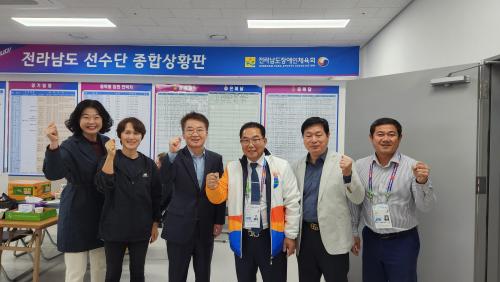 ÀڸŰῬ ÁöÁ¤ µµ½Ã¿¡ ´ëÇØ ½Ãû ½Ç±¹ ±¹․°úÀå ¹× Á÷¿øµéÀº ¼±¼ö´Ü »óȲ½Ç À» ¹æ¹® °Ý·ÁÇÏ¸é¼ Àå¾ÖÀÎüÀü ¼º°ø °³ÃÖ¿¡ ¿ÂÈûÀ» ±â¿ïÀ̰í ÀÖ´Ù.