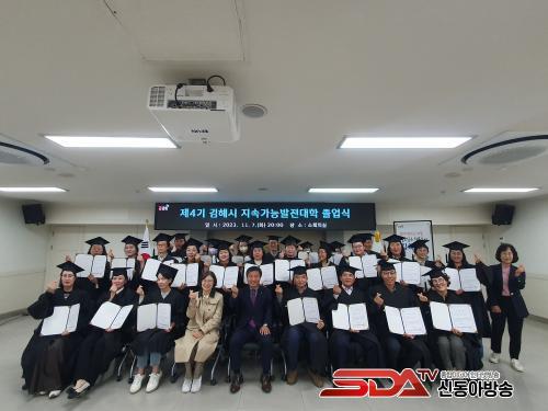 ÀÌ½Ã¿ì ±èÇØ½ÃÁö¼Ó°¡´É¹ßÀüÇùÀÇȸ »óÀÓȸÀåÀº ¡°5ÁÖ µ¿¾È ´ÊÀº ½Ã°£±îÁö ±³À°¿¡ Âü¿©ÇÑ 31¸íÀÌ Á¹¾÷À» ÇÏ°Ô µÇ¾î Áø½ÉÀ¸·Î ÃàÇϵ帰´Ù¡±¸ç ¡°±×µ¿¾È ´Ù¾çÇÑ ¿¬·É´ëº°·Î ±³À° ü°è¸¦ ±¸ÃàÇßÀ¸¸ç À̹ø 4±â ¼ö·á»ýµéÀÌ Á¹¾÷ ÀÌÈÄ¿¡µµ Áö¼Ó°¡´É¹ßÀüÀÇ °¡Ä¡¸¦ ³ª´©°í ½ÇõÇÏ´Â µ¥ Å« ¿ªÇÒÀ» ÇØÁֱ⠹ٶõ´Ù¡±°í ¸»Çß´Ù.