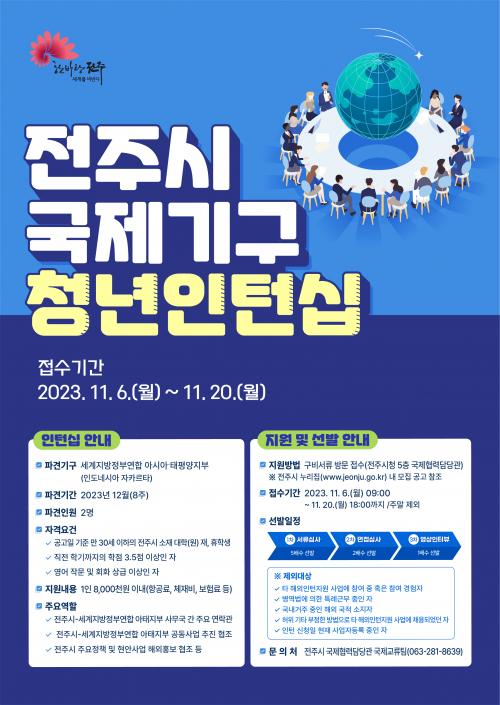 ½Ã´Â ¿À´Â 20ÀϱîÁö ¾à 2ÁÖ°£ ÀüÁÖÁö¿ª ´ëÇлý°ú ´ëÇпø»ýÀ» ´ë»óÀ¸·Î ±¹Á¦±â±¸ ÀÎÅÏ½Ê ÇÁ·Î±×·¥ÀÇ Âü°¡ÀÚ¸¦ °ø°³ ¸ðÁýÇÑ´Ù.