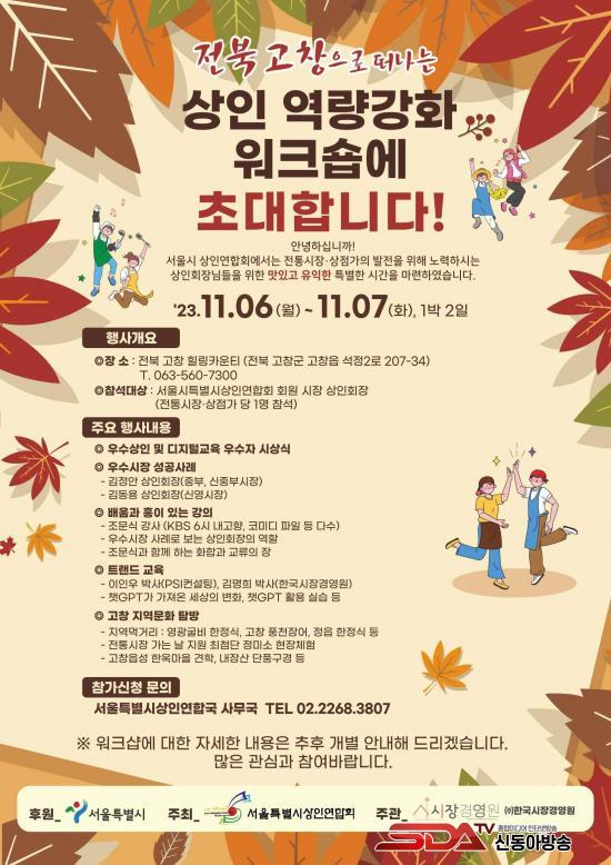 [½Åµ¿¾Æ¹æ¼Û = ½Å°æ½Ä ±âÀÚ] Çѱ¹½ÃÀå°æ¿µ¿ø(´ëÇ¥ ±è¸íÈñ)Àº Áö³­ 11¿ù 6~7ÀÏ ÀüºÏ °íâ¿¡¼­ 2023 »óÀοª·®°­È­ ¿öÅ©¼óÀ» °³ÃÖÇß´Ù°í ¹àÇû´Ù. ¼­¿ïƯº°½Ã»óÀο¬ÇÕȸ ȸ¿ø½ÃÀåÀ¸·Î µî·ÏµÈ ÀüÅë½ÃÀ塤»óÁ¡°¡ÀÇ »óÀÎȸÀå µî 120¿©¸íÀÌ Âü¼®ÇÑ À̹ø ¿öÅ©¼óÀº ¿ì¼ö»óÀÎ ½Ã»ó ¹× ¼º°ø»ç·Ê ¹ßÇ¥, êGPT Ȱ¿ë µîÀÇ Æ®·£µå ±³À°À¸·Î ±¸¼ºµÇ¾ú´Ù.