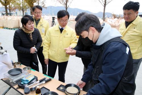 [½Åµ¿¾Æ¹æ¼Û=±èÀçÂù±âÀÚ] ¹Úº´±Ô ±¤»ê±¸Ã»ÀåÀÌ 14ÀÏ º»·®µ¿ °ø°øºñÃà¹Ì°î ¼ö¸Å ÇöÀåÀÎ ³²»ê 95È£ â°í¸¦ ¹æ¹®ÇØ ÃâÇÏ ³ó¾÷Àΰú ³óÇù, ³ó»ê¹° ǰÁú°ü¸®¿ø µî °ü°èÀÚµéÀ» °Ý·ÁÇß´Ù.