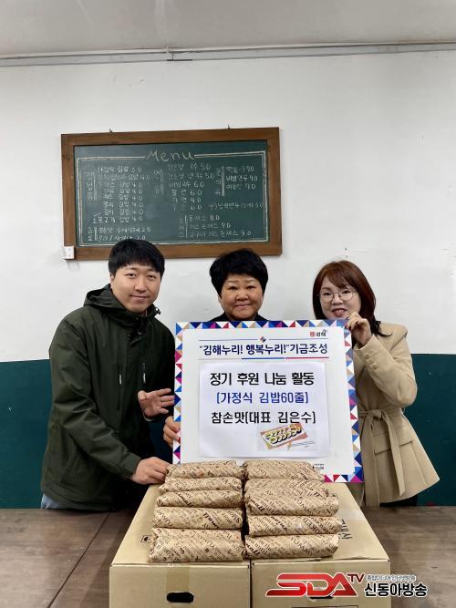 [½Åµ¿¾Æ¹æ¼Û´º½º=ÃÖ¼ÛÈ­±âÀÚ] Âü¼Õ¸À(´ëÇ¥ ±èÀº¼ö)Àº ±èÇØ½Ãº¹ÁöÀç´Ü(´ëÇ¥ÀÌ»ç ÃÖÁ¤±Ô) ±¸»ê»çȸº¹Áö°ü¿¡ ¹«·á±Þ½Ä ¼­ºñ½º ´ë±âÀÚ¿Í ±× ¿Ü Áö¿ª ³» °á½ÄÀÇ ¿ì·Á°¡ ÀÖ´Â Àú¼ÒµæÃþ 30¸í¿¡°Ô ¸Å´Þ Á¤±âÀûÀ¸·Î °¡Á¤½Ä ±è¹ä(60ÁÙ)À» ÈÄ¿øÇϱâ·Î Çß´Ù.
