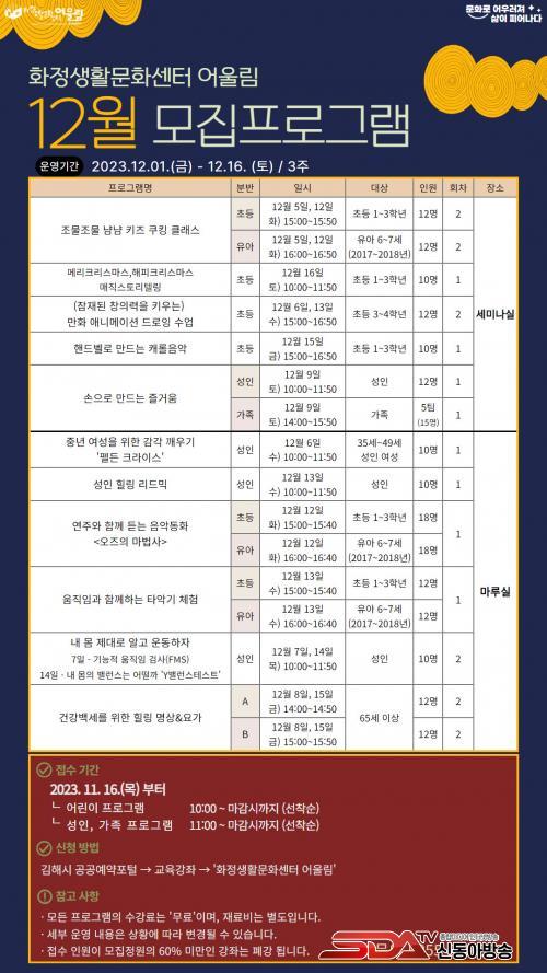 ¼ºÀÎ ÇÁ·Î±×·¥ ¡ã¡®Á߳⠿©¼ºÀ» À§ÇÑ °¨°¢ ±ú¿ì±â-Æçµç Å©¶óÀ̽º¡¯´Â 12¿ù 6ÀÏ ¡®¿òÁ÷ÀÓÀÇ ÀÚ°¢¡¯À» ÅëÇØ Á߳⠿©¼ºÀÇ ½Åü ±â´É Çâ»ó¿¡ µµ¿òÀ» ÁÖ´Â ÇÁ·Î±×·¥ÀÌ´Ù. ¡ã¡®¼ÕÀ¸·Î ¸¸µå´Â Áñ°Å¿ò–°ø¿¹¡¯´Â 12¿ù 9ÀÏ °¡Á×°ø¿¹ ¹æ½ÄÀ¸·Î ½Ö¾î ۸µ°ú °í¾çÀÌ ¸ð¾ç Ä«µåÄÉÀ̽º¸¦ ¸¸µé¾î º»´Ù. ¡ã¡®³» ¸ö Á¦´ë·Î ¾Ë°í ¿îµ¿ ÇÏÀÚ¡¯´Â FMS(±â´ÉÀû ¿òÁ÷ÀÓ °Ë»ç) ¹× Y ¹ë·±½º Å×½ºÆ®¸¦ Ȱ¿ëÇÏ¿© °³Àκ° ½Åü¿¡ ¸ÂÃá ¿îµ¿Ã³¹æÀ» ÁøÇàÇϸç 12¿ù 7Àϰú 14ÀÏ ÇÑ Â÷·Ê¾¿ ÁøÇàµÈ´Ù.