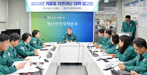 [½Åµ¿¾Æ¹æ¼Û=ÀÌÁöÇö±âÀÚ] ±¤ÁÖ ¼­±¸(±¸Ã»Àå ±èÀ̰­)´Â 21ÀÏ ¿ÀÀü Àç³­¾ÈÀü »óȲ½Ç¿¡¼­ ±èÀ̰­ ¼­±¸Ã»Àå ÁÖÀç·Î 12°³ Àç³­°ü¸®ºÎ¼­°¡ Âü¼®ÇÑ °¡¿îµ¥ ´ë¼³, ÇÑÆÄ µî °Ü¿ïö ÀÚ¿¬Àç³­ ´ëÃ¥ º¸°íȸ¸¦ °³ÃÖÇϰí Á¾ÇÕ´ëÃ¥ ¹× ºÎ¼­º° ÃßÁø»óȲÀ» °øÀ¯Çß´Ù.