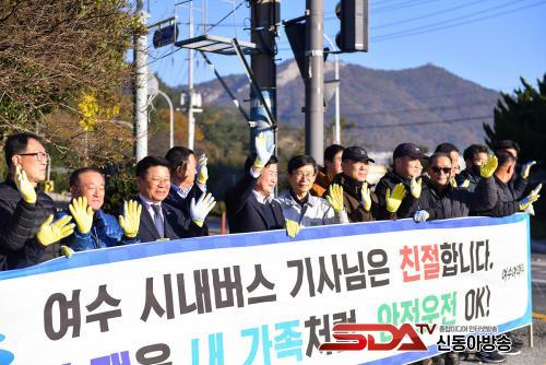 ¿©¼ö½Ã´Â Áö³ 21ÀÏ ½Ã³»¹ö½º Â÷°íÁö(¹ÌÆò¡¤µÐ´ö)¿¡¼ Á¤±â¸í ½ÃÀåÀ» ºñ·ÔÇØ ½Ã³»¹ö½º 3°³ ¾÷ü ¿î¼öÁ¾»çÀÚ, ½Ã °ü°è °ø¹«¿ø µî 100¿© ¸íÀÌ Âü¼®ÇÑ °¡¿îµ¥ ¡®½Ã³»¹ö½º Ä£Àýµµ UP! ±ÞÃâ¹ß‧±ÞÁ¦µ¿ STOP!¡¯ Ä·ÆäÀÎÀ» ÆîÃÆ´Ù.