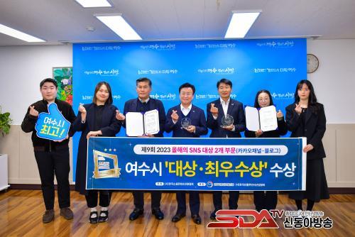 ¿©¼ö½Ã°¡ Áö³ 10¿ù 'Á¦13ȸ 2023 ´ëÇѹα¹ SNS ´ë»ó'¿¡¼ 8³â ¿¬¼Ó ÃÖ¿ì¼ö»óÀ» ¼ö»óÇѵ¥ À̾î, ¡®Á¦9ȸ 2023 ¿ÃÇØÀÇ SNS¡¯¿¡¼µµ īī¿À ä³Î°ú ºí·Î±× ºÎºÐ¿¡¼ °¢°¢ ´ë»ó°ú ÃÖ¿ì¼ö»óÀ» ¼ö»óÇÏ°Ô µÈ °Í.
